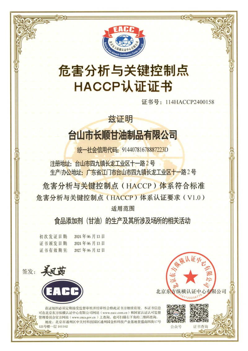 主頁 > > 資質(zhì)證書 > HACCP認(rèn)證證書