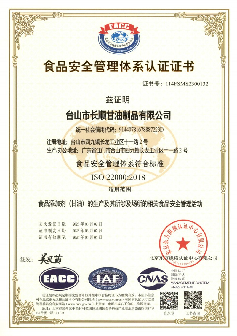 主頁 > > 資質(zhì)證書 > ISO 22000